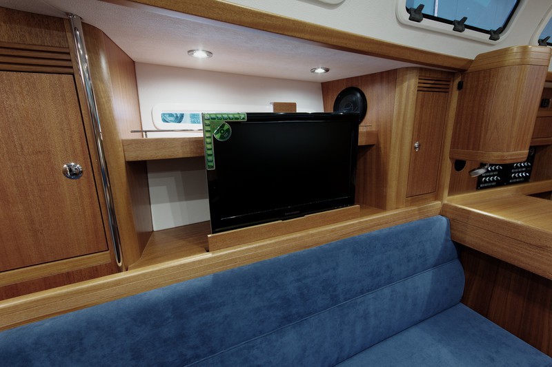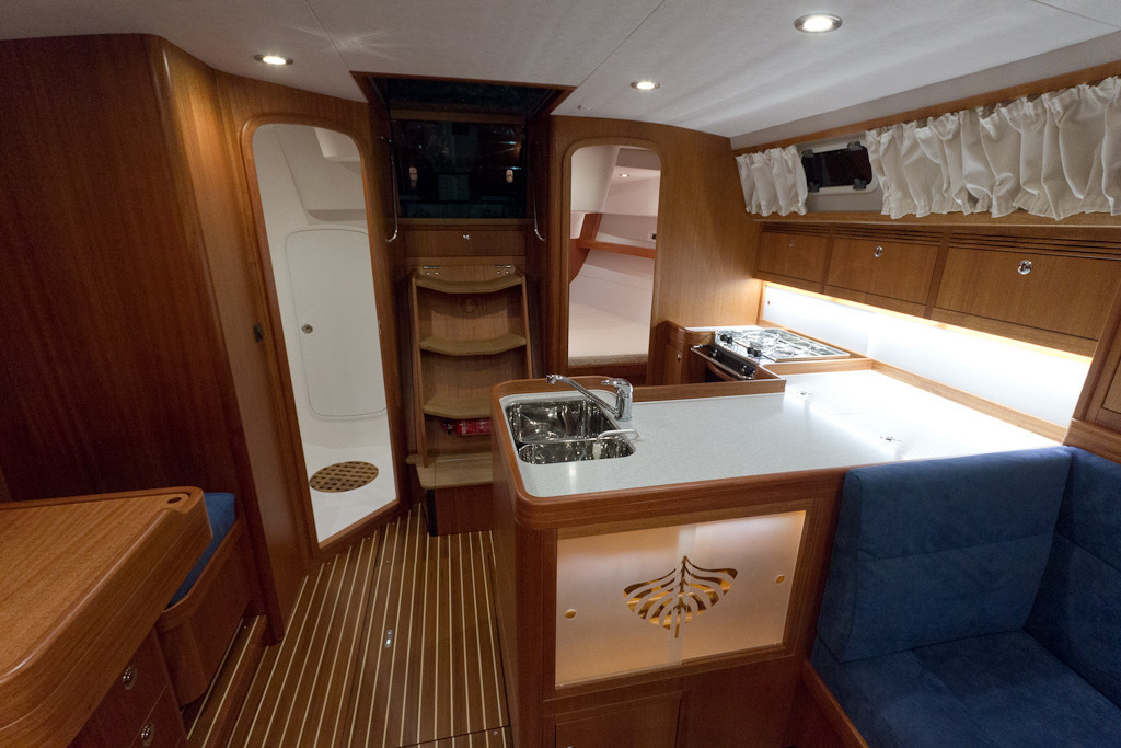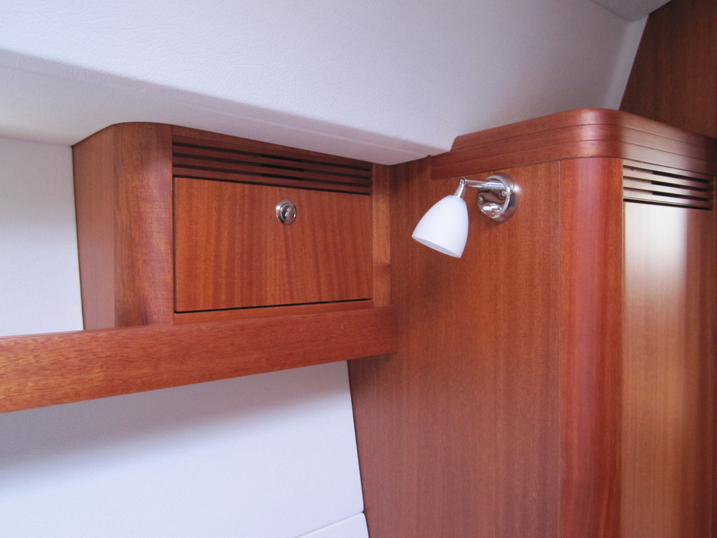In the first photo you see a Saare 38.2 with an interior made of oak with a step to get into the bunk better and more comfortably. There is a large drawer under the tread.