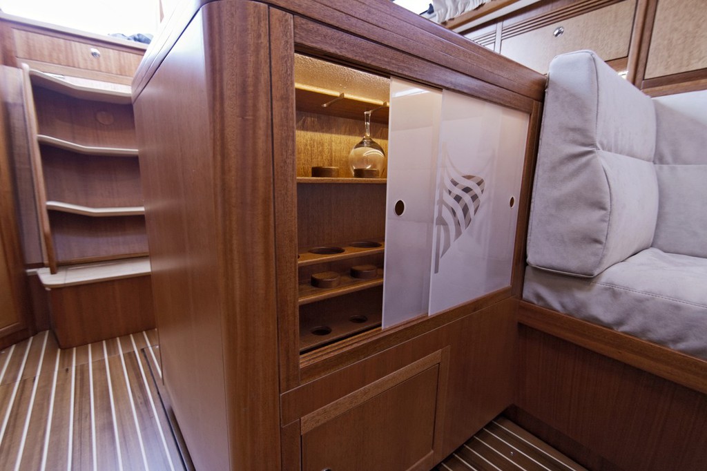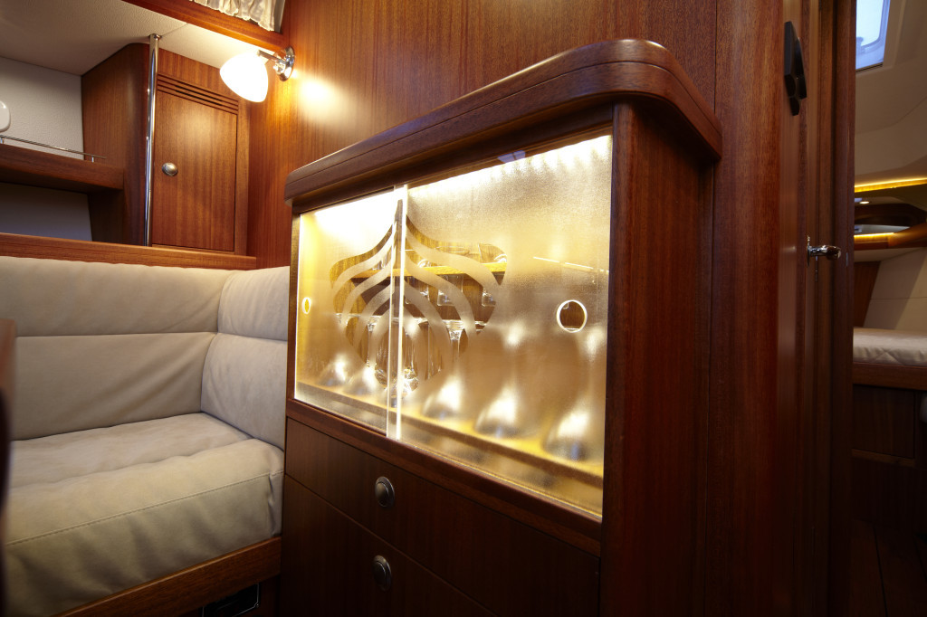 All cupboards and also the storage areas in the pantry and salon on the Saare yachts are provided with elegant ventilation slots.