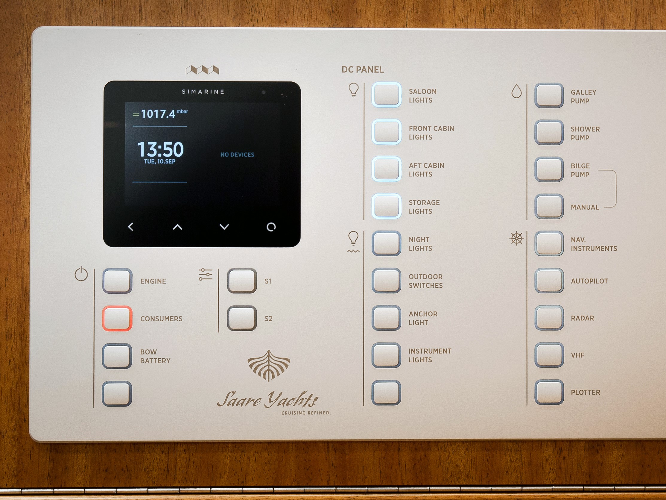 The cockpit is identical to the tried and tested Saare 38. The halyard winch on the starboard side of the cabin roof is always installed as an electric two-speed winch on the 38.2. With additional control buttons on the control column, the helmsman can raise and lower the sails as well as reef and furl them with the best possible overview.