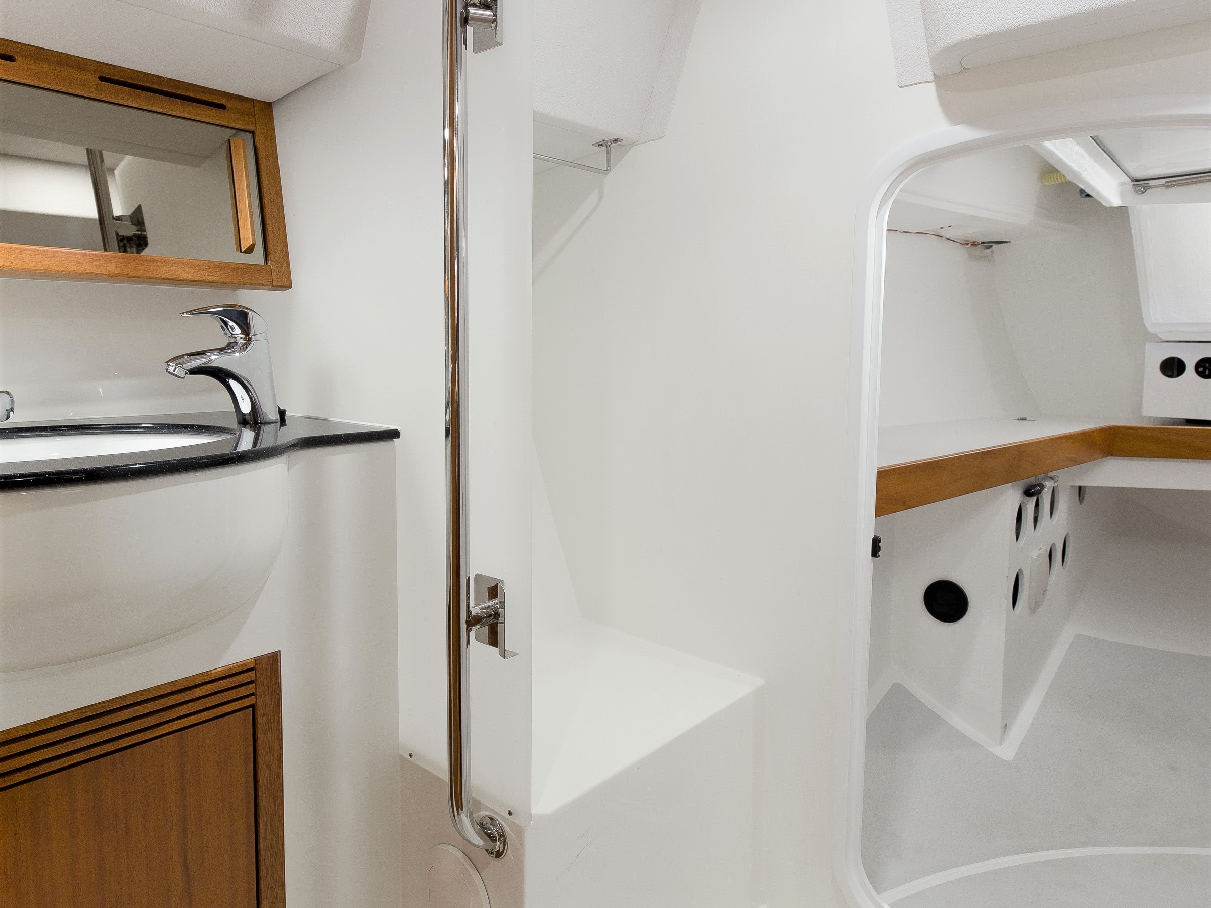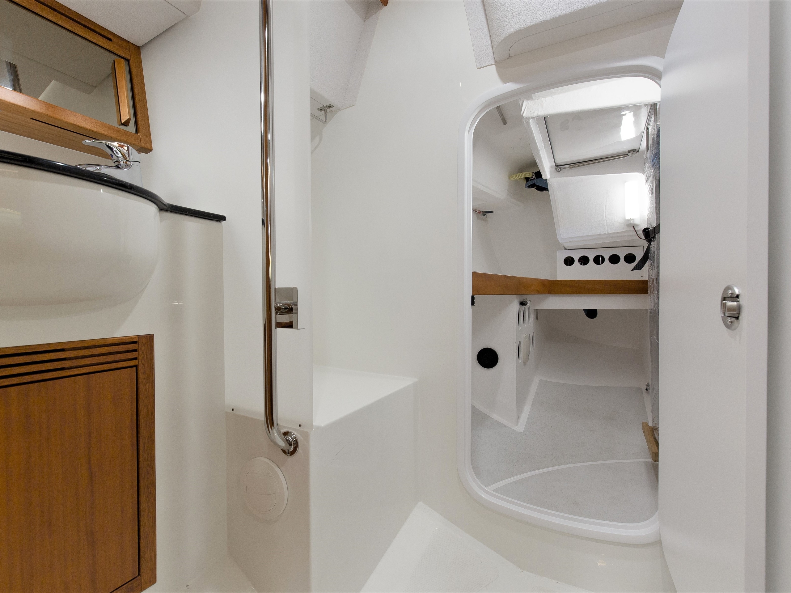 In addition to a cozy salon, a large galley and the optional guest cabin to port aft, the large wet room with a separable shower to starboard next to the companionway is another highlight on board the Saare 38.2.