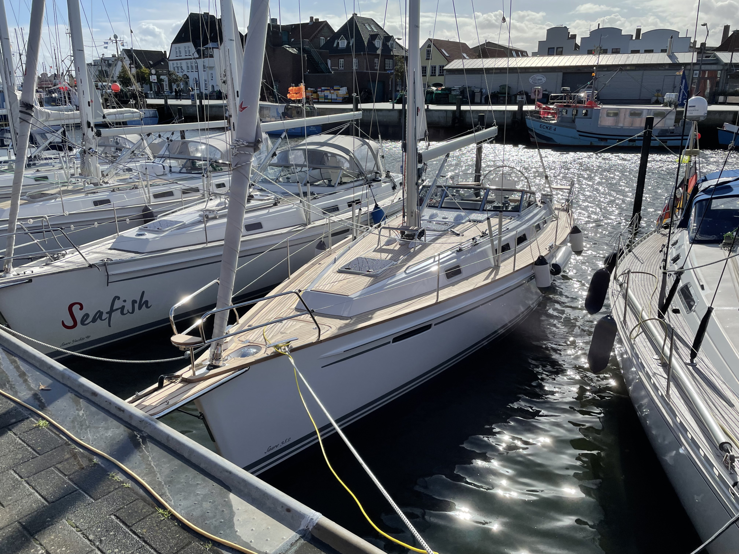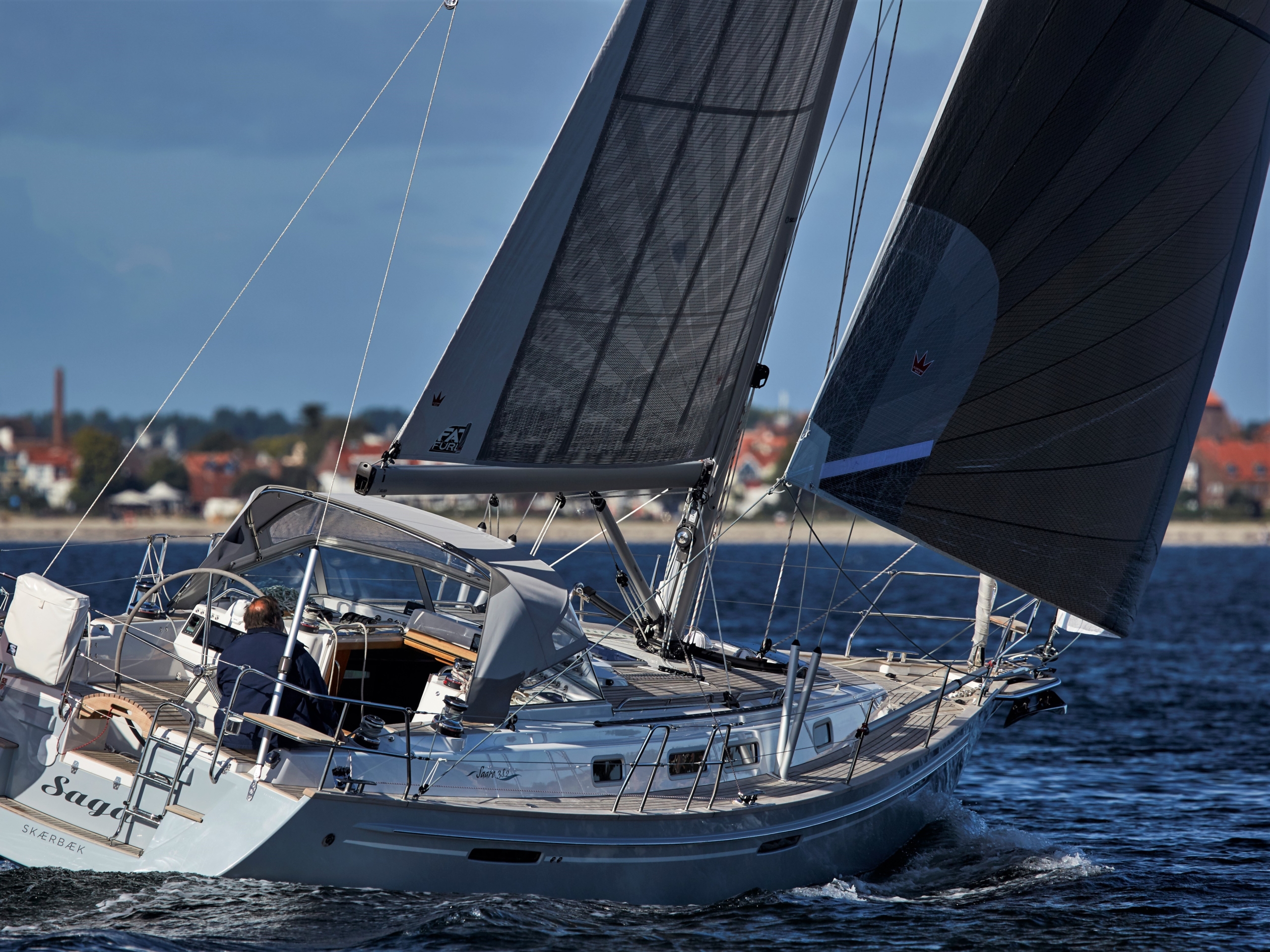 In 2018, the first owner picked up his Saare 38.2 together with his wife in Estonia. He, a very experienced sailor, had already owned 10 yachts from various Scandinavian shipyards and had now configured a very special yacht for himself. After a long holiday trip, they reached their home port in Denmark without any problems. This Saare 38.2 is equipped with bow and stern steel rudder with docking system, a furling mast and a self-tacking jib, and a complete set of electric Harken winches.