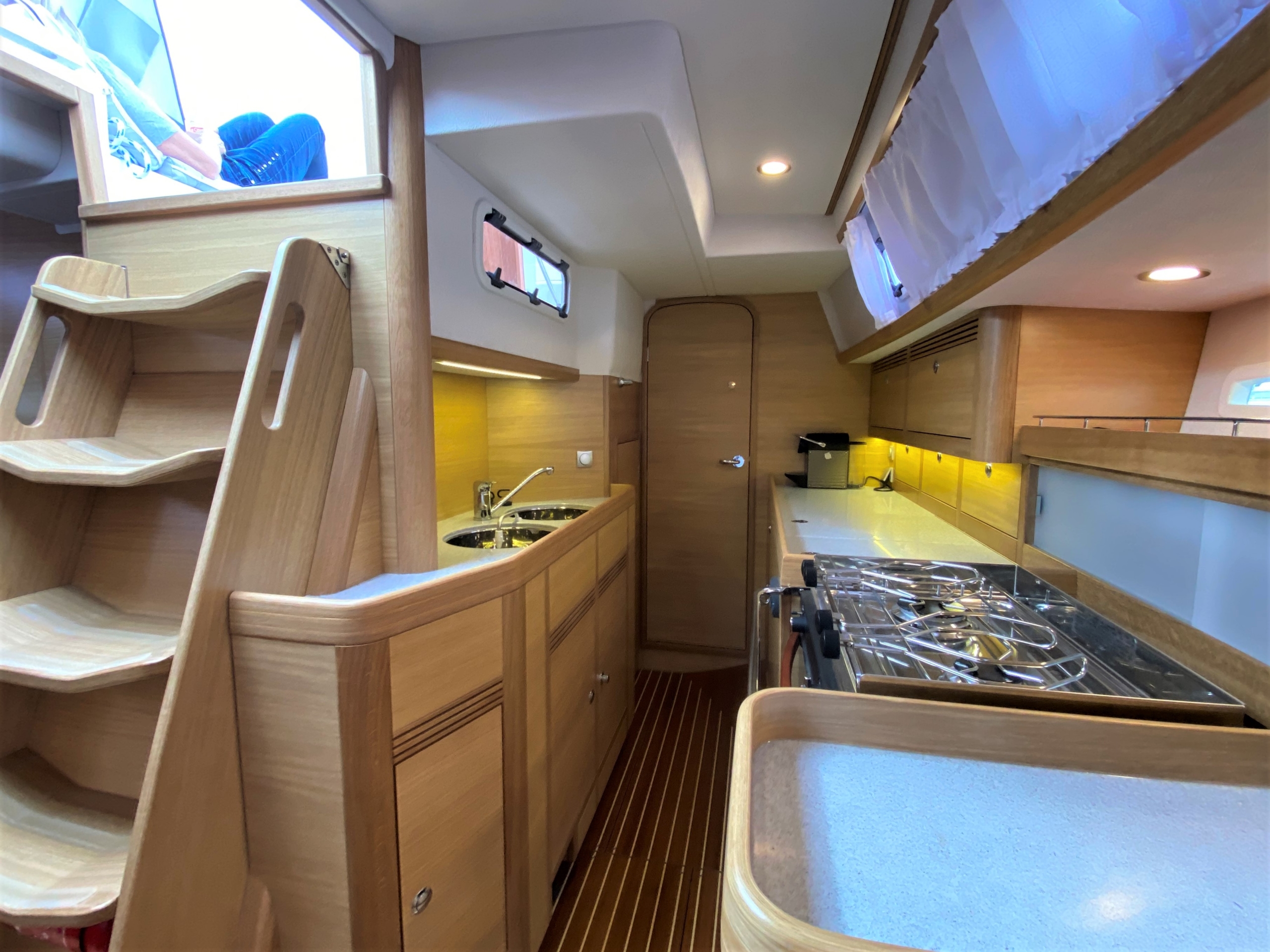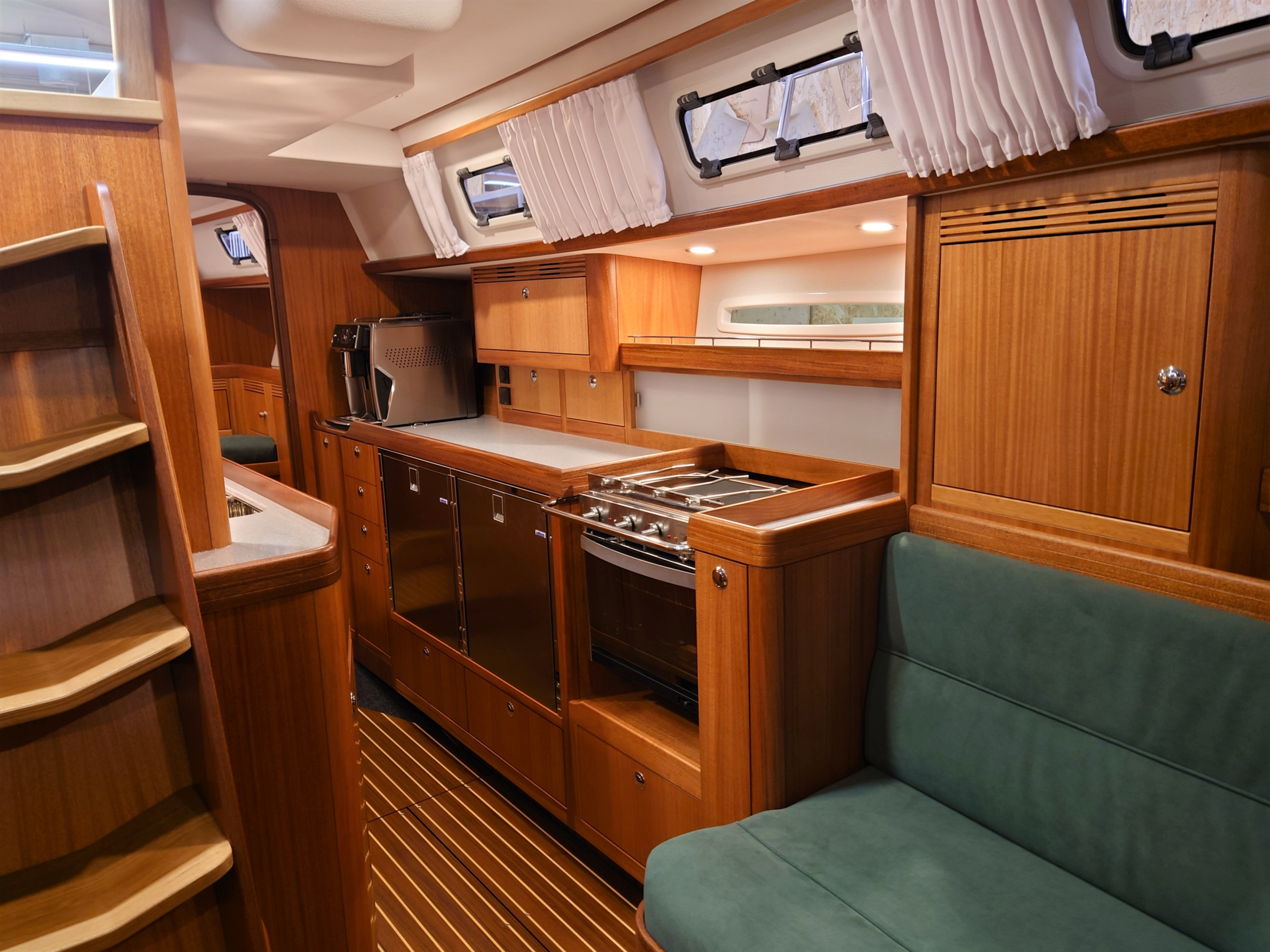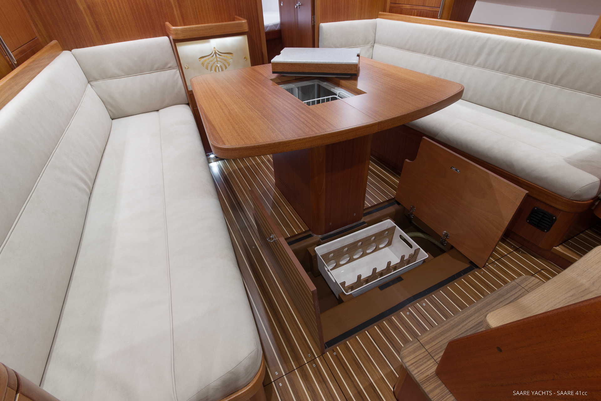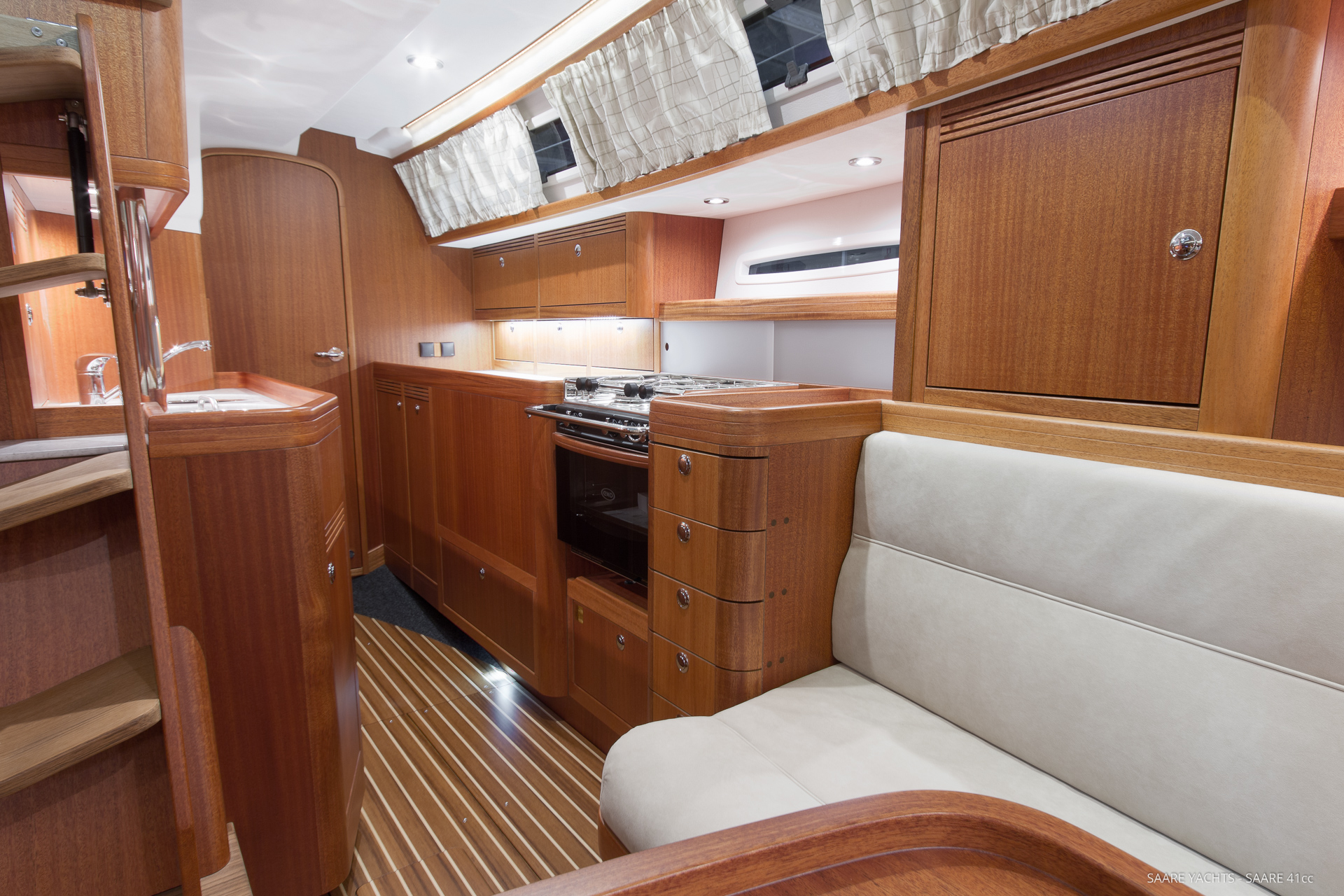 The spacious galley in the passage to the rear cabin, the salon with a fully-fledged chart table and the bow cabin with another wet cell make the Saare 41cc a real touring yacht for long journeys for our customers.